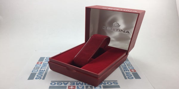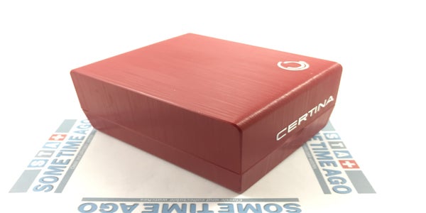 Beautiful red Certina vintage wrist watch box. Complete made of hard plastic so ca. 1970 will fit a large period chronograph like the Chronolympic, PH1000 diver or DS2. Box is in perfect condition, complete and original.