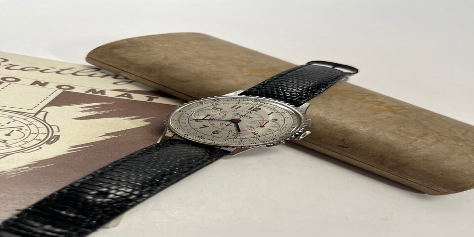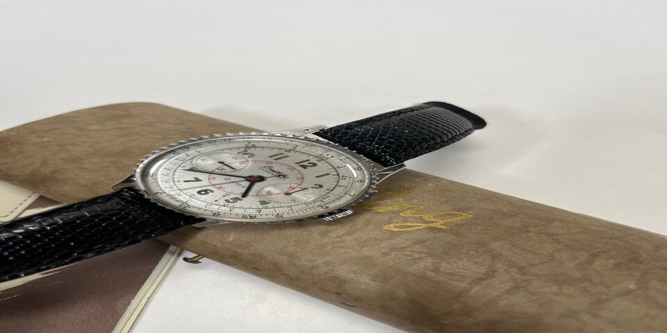 The perfect vintage watch. This is the most sought-after AOPA, one of the first with a Valjoux 72 movement. Moreover, it is in near-mint condition thanks to a professional and accurate restoration carried out in 2014 by a reputable Breitling collector in the US. The dial, bezel, and hands were refinished, the movement was serviced, and the case was lightly reworked. It also received a period-correct leather strap that tapers at the buckle (from 22mm on the case to 16mm). It is a classic watch from 1954/1955 that shows no signs of age. It is therefore very wearable and extremely presentable.