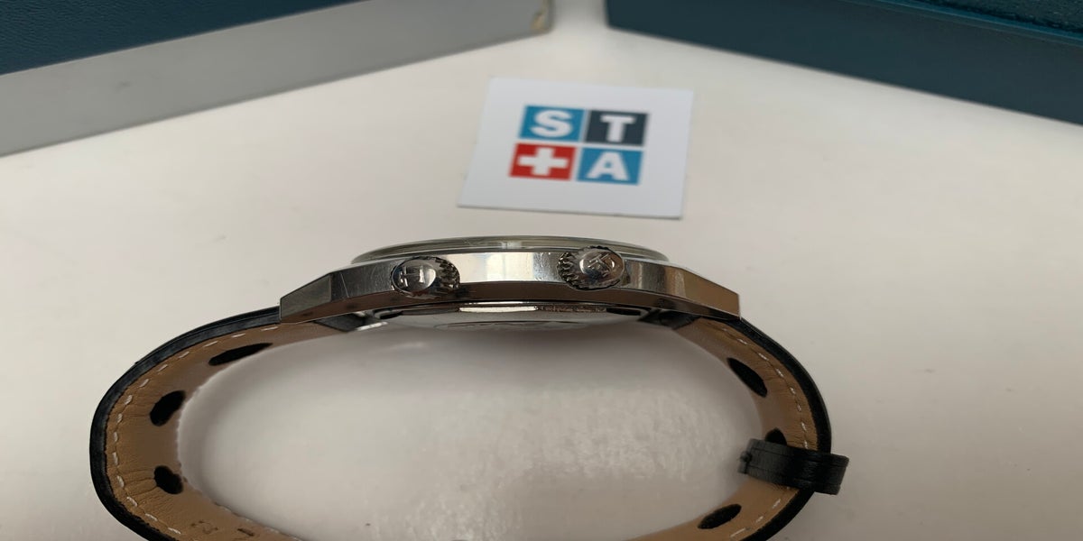 Beautiful condition and all original, working like it should with only small signs of use and age. The new brown leather strap with racing holes is also included.